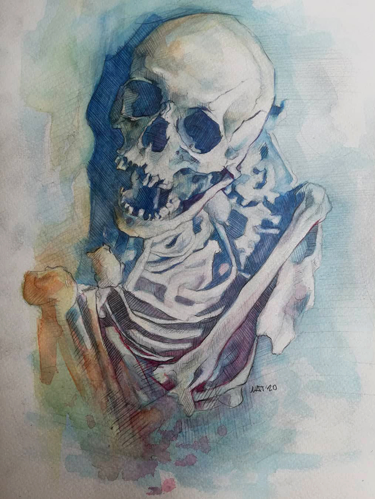 “Covid-19” Acuarela sobre papel Canson, 32,5 x 23 cm, 2021